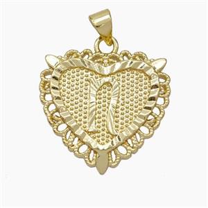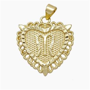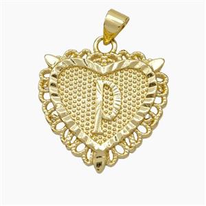 Copper Heart Letter Pendant Alphabet Gold Plated Mixed, approx 22mm