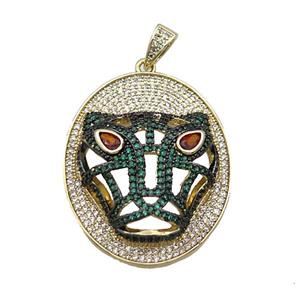 Copper Pendant Leopard Pave Zircon Oval Gold Plated, approx 31-40mm