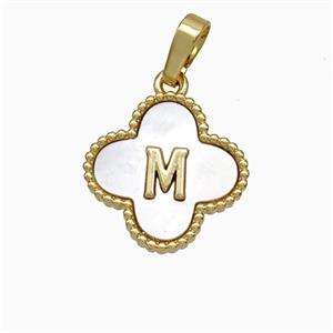 Copper Clover Pendant Pave Shell Letter-M 18K Gold Plated, approx 16mm