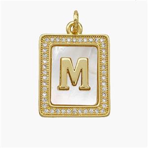 • Copper Letter-M Pendant Pave Shell Zirconia Rectangle 18K Gold Plated, approx 17-20mm