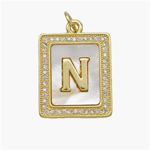 • Copper Letter-N Pendant Pave Shell Zirconia Rectangle 18K Gold Plated, approx 17-20mm