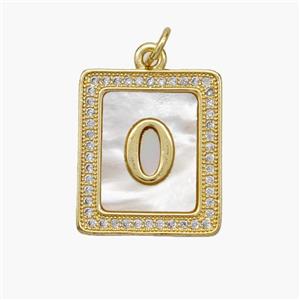 • Copper Letter-O Pendant Pave Shell Zirconia Rectangle 18K Gold Plated, approx 17-20mm
