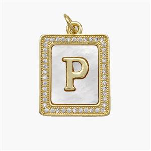 • Copper Letter-P Pendant Pave Shell Zirconia Rectangle 18K Gold Plated, approx 17-20mm