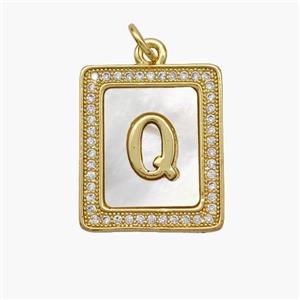 • Copper Letter-Q Pendant Pave Shell Zirconia Rectangle 18K Gold Plated, approx 17-20mm