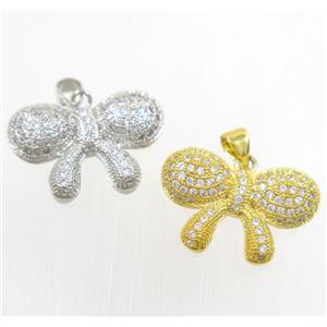 copper Bowknot pendant paved zircon, mix color, approx 15x22mm