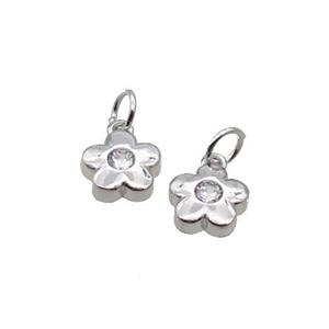 • Copper Flower Pendant Pave Zircon Platinum Plated, approx 8mm