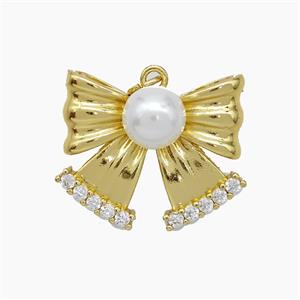 Christmas Gift Copper Bow Pendant Pave Shell Zirconia Painted 18K Gold Plated, approx 11mm, 22-25mm