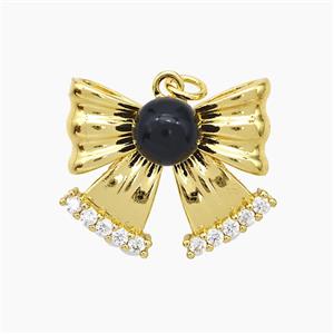 Copper Knotbow Pendant Pave Zirconia Black Pearlized Resin Gold Plated, approx 8mm, 20-25mm