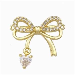 Copper Bowknot Pendant Pave Zirconia Gold Plated, approx 18-20mm