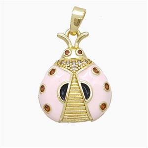 Copper Ladybug Pendant Pave Zirconia Pink Enamel Gold Plated, approx 15-19mm