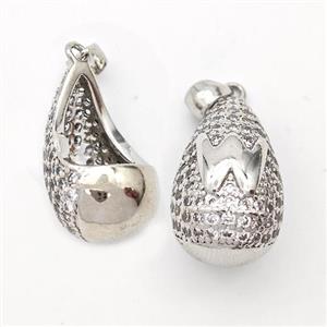 • Copper Teardrop Pendant Pave Zirconia Letter-W Hollow Platinum Plated, approx 14-24mm