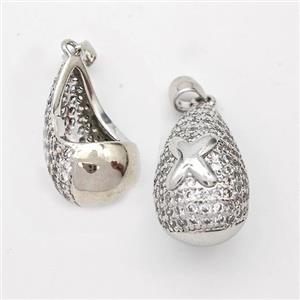 • Copper Teardrop Pendant Pave Zirconia Letter-X Hollow Platinum Plated, approx 14-24mm