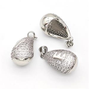 • Copper Teardrop Pendant Pave Zirconia Mix Letter Hollow Platinum Plated, approx 14-24mm