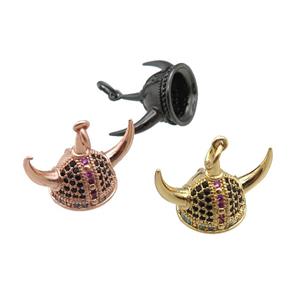 copper Viking Helmet pendant paved zircon, Hat Gothic Norse, mixed, approx 15-20mm
