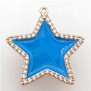 copper star pendant pave zircon with blue Enameling, rose gold, approx 28mm dia