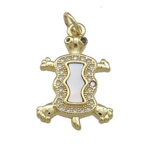 Copper Tortoise Charms Pendant Pave Abalone Shell Zircon 18K Gold Plated, approx 14.5-20mm