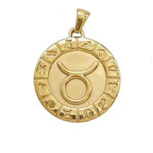 • Stainless Steel Symbols Pendant Zodiac Taurus Circle Gold Plated, approx 25mm