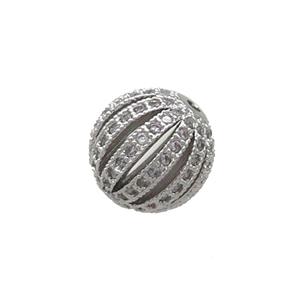 Copper Round Beads Pave Zircon Hollow Platinum Plated, approx 10mm dia