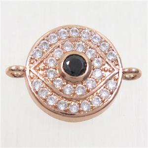 • copper evil eye connector paved zircon, rose gold, approx 13.5mm dia