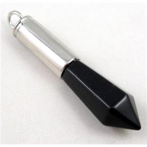 black onyx Chakra pendant, paved gems, bullet, approx 16x55mm