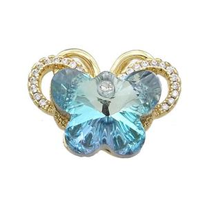 Blue Crystal Glass Butterfly Pendant Copper Pave Zircon Gold Plated, approx 18-25mm