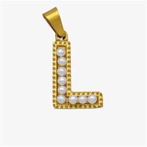 • Stainless Steel Pendant Pave Pearlized Resin Letter-L Gold Plated, approx 10-15mm