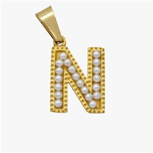 • Stainless Steel Pendant Pave Pearlized Resin Letter-N Gold Plated, approx 10-15mm