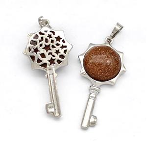 Alloy Key Charms Pendant Pave Golden Sandstone Platinum Plated, approx 16mm, 20-40mm