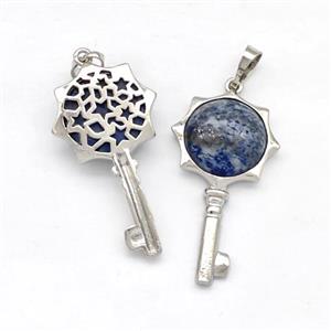 Alloy Key Charms Pendant Pave Blue Lapis Platinum Plated, approx 16mm, 20-40mm