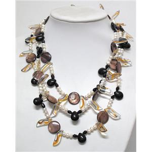 fashion freshwater Pearl Necklace with glass, shell bead, 160cm (64 inch) length