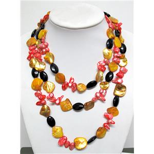 fashion textured Pearl Necklace with glass, shell bead, 160cm (64 inch) length