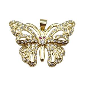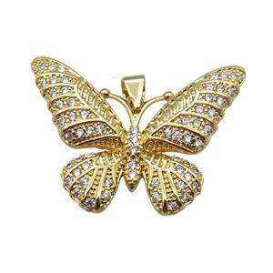 • copper butterfly pendant pave zircon, gold plated, approx 22-28mm