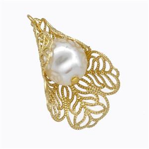 • Copper Flower Pendant Pave Pearlized Resin Gold Plated, approx 20-30mm