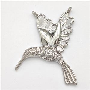 Copper HummingBirds Pendant Micro Pave Zirconia Platinum Plated, approx 20-30mm