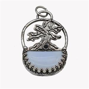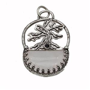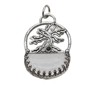 • Alloy Tree Pendant Pave Opalite Moon Antique Silver, approx 26-35mm