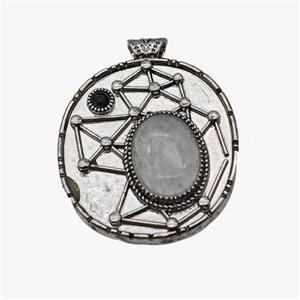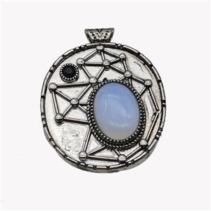 Alloy StarMap Pendant Pave Opalite Antique Silver, approx 13-18mm, 35-40mm