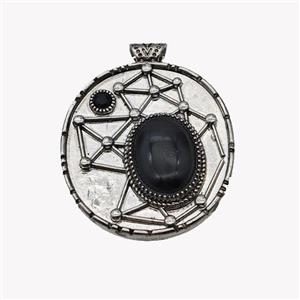 Alloy StarMap Pendant Pave Black Obsidian Antique Silver, approx 13-18mm, 35-40mm