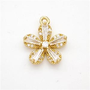 Copper Flower Pendant Pave Crystal Glass Zirconia Gold Plated, approx 13.5mm