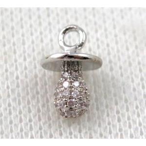 • copper tassil bail pendant pave zircon, crown, platinum plated, approx 11-14mm