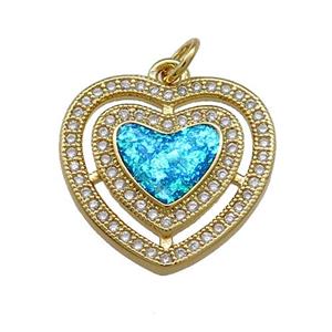 Copper Heart Pendant Pave Blue Fire Opal Zircon 18K Gold Plated, approx 16-18mm