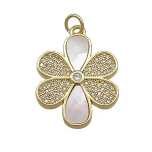 • Copper Flower Pendant Pave Shell Zircon 18K Gold Plated, approx 17-22mm-5%