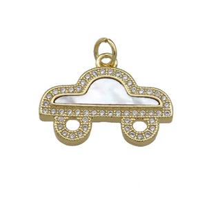 • Copper Car Pendant Pave Shell Zircon 18K Gold Plated, approx 13-21mm-5%