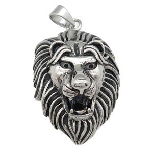 stainless steel Lion pendant, antique silver, approx 40-55mm