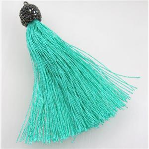 green nylon tassel pave rhinestone, approx 12mm, 80mm length