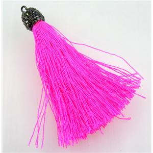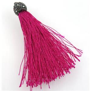 hotpink nylon tassel pave rhinestone, approx 12mm, 80mm length