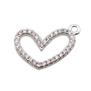 • copper heart pendants paved zircon, platinum plated, approx 14-15mm