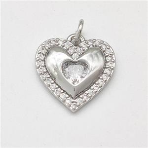 Copper Heart Pendant Micro Pave Zirconia Platinum Plated, approx 15mm