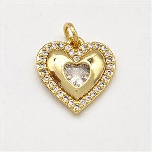 Copper Heart Pendant Micro Pave Zirconia Gold Plated, approx 15mm