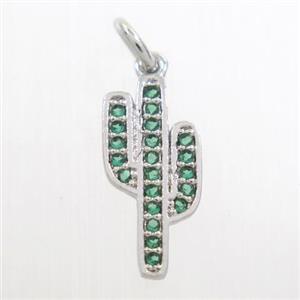 copper cactus pendant paved green zircon, platinum plated, approx 7-15mm