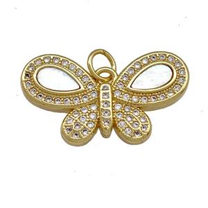 • Copper Butterfly Pendant Pave Shell Zircon 18K Gold Plated, approx 18-24mm
